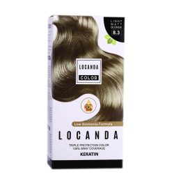 کیت رنگ مو کراتینه لوکاندا شماره 8.3 رنگ بلوند زیتونی روشن حجم 50 میل