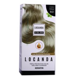 کیت رنگ مو کراتینه لوکاندا شماره 9.3 رنگ بلوند زیتونی خیلی روشن حجم 50 میل