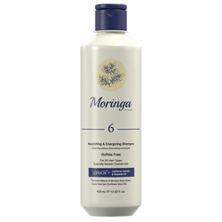شامپو مغذی و انرژیبخش بدون سولفات مورینگا مناسب انواع مو و موهای کراتینه مدل 6 حجم 400 میل