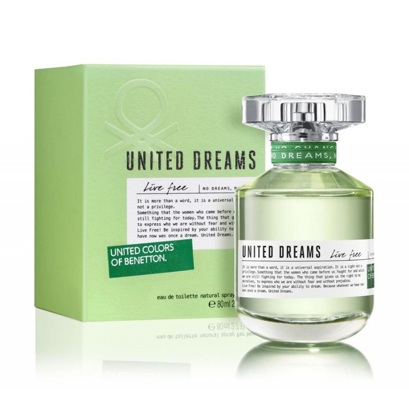 آزادانه زندگی کن ! ( Live Free ) یکی دیگر از عطرهای زنانه بنتون از خانواده یونایتد دریمز می باشد . این محصول همانطور که از نامش پیداست ، پیرو زندگی آزادانه و بدون قید و بند توام با لذت و شادی برای زنان می باشد . رایحه این محصول با نت چای سبز شروع شده و با نت های شکوفه های بهاری به اوج می رسد .