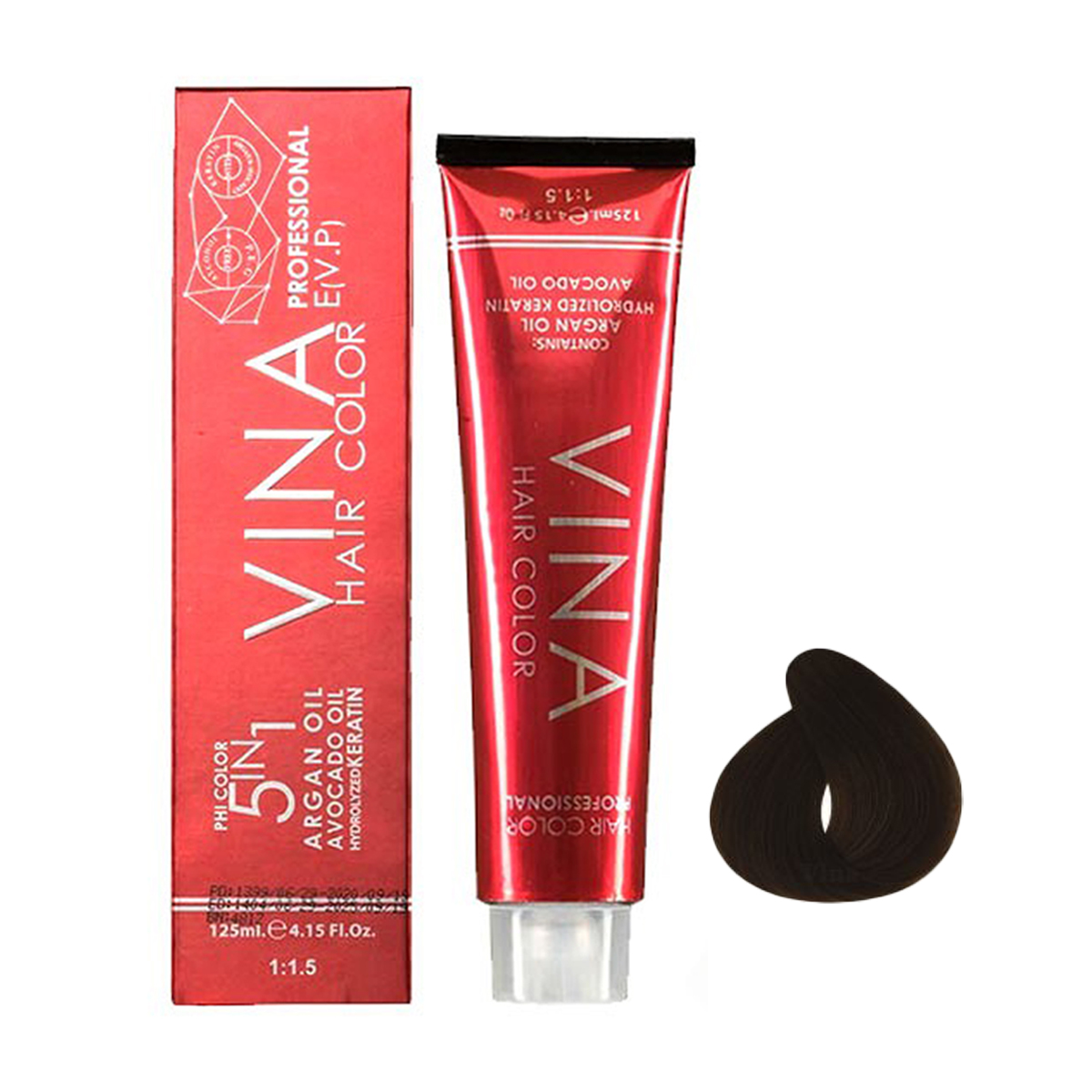 رنگ مو وینا شماره 5.2 قهوه ای زیتونی روشن حجم 125 میلVina Hair Color No 5.2 Light Matt Brown - 125 ML