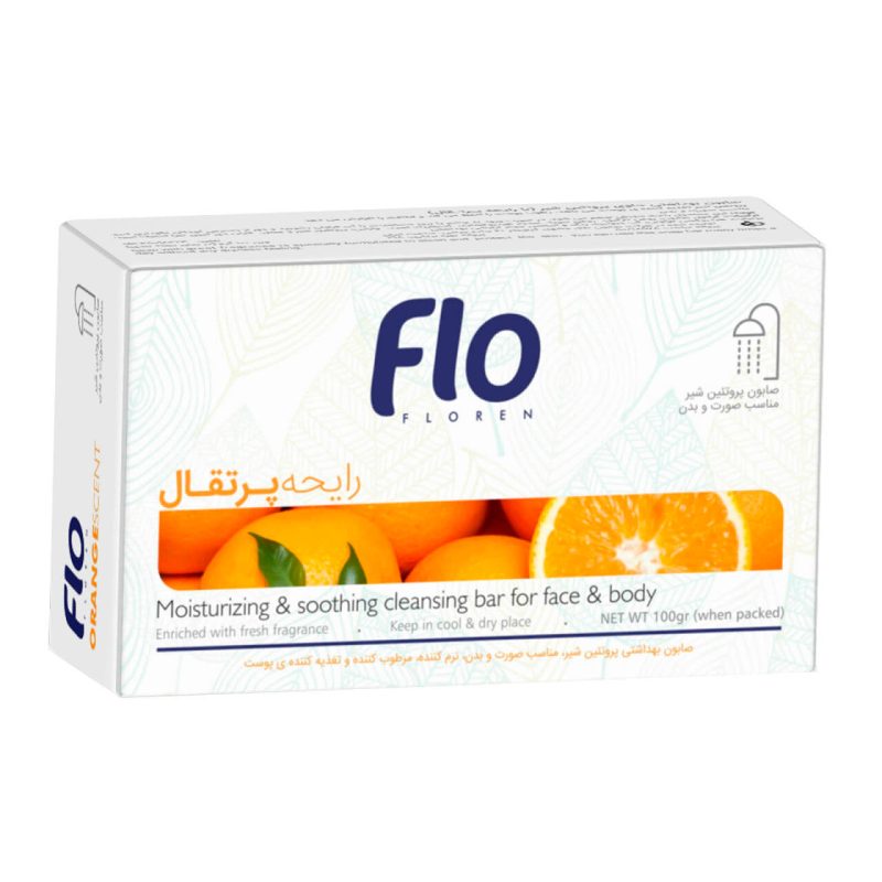 صابون پروتئین شیر فلو با رایحه پرتقال مقدار 100 گرمFlo Orange Scent Cleansing Soap-100g