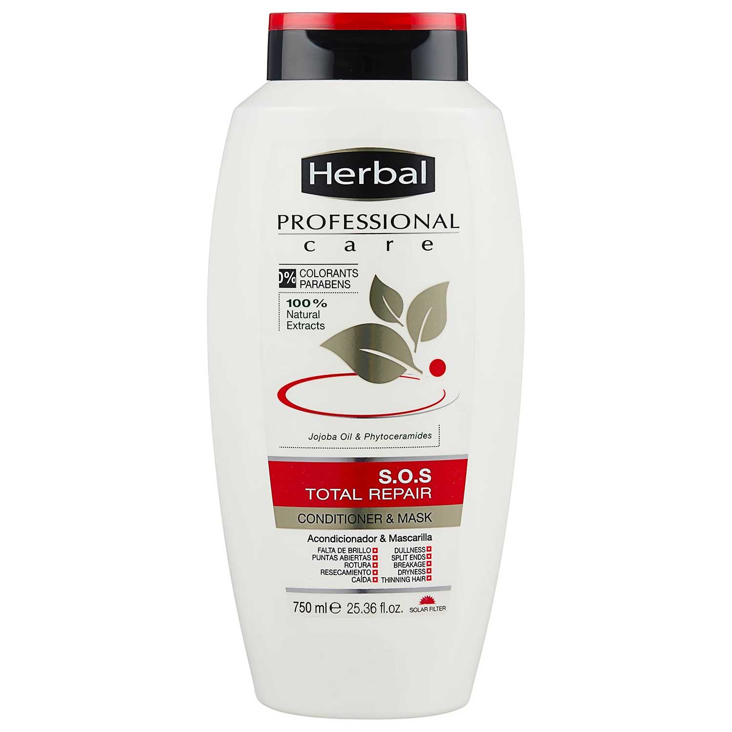 ماسک و نرم کننده موهای آسیب دیده هربال مدل SOS Total Repair حجم 750 میلHerbal Professional Care SOS Total Repair Mask & Conditioner-750ML