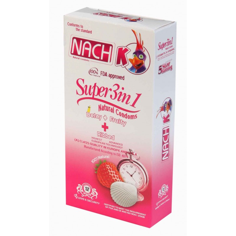 کاندوم 12 عددی ناچ NACH مدل سوپر 3 در 1NACH K Super 3 in 1 Natural Condoms-12pcs/Pack