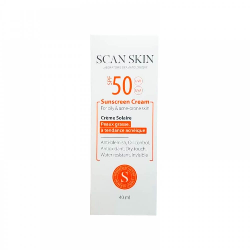 کرم ضد آفتاب اسکن اسکین مناسب پوست های چرب و مستعد آکنه حجم 40 میلScan Skin Sunscreen Cream for Oily & Acne Prone Skin- 40 ml