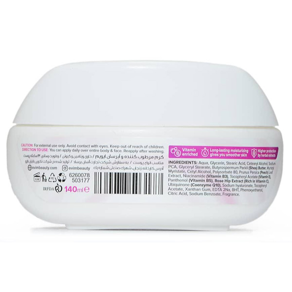 - کرم مرطوب کننده ایویم حاوی مولتی ویتامین مناسب انواع پوست حجم 140 میل