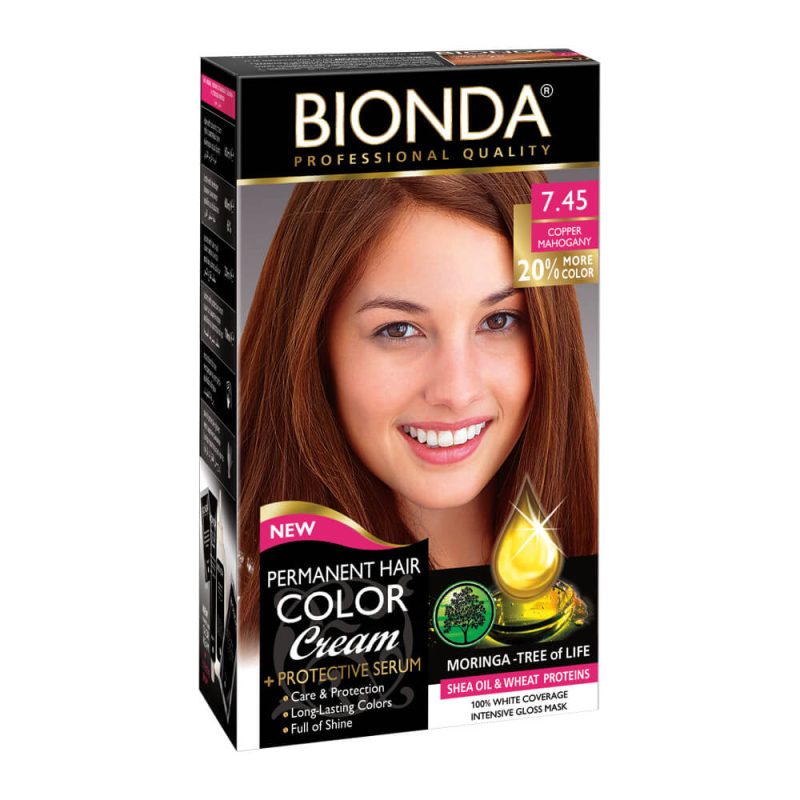 کیت رنگ مو بیوندا شماره 7.45 رنگ مسی ماهاگونی حجم 60 میلBionda Permanent Hair Color Kit- 60ML