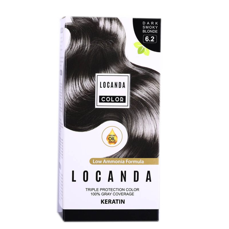 کیت رنگ مو کراتینه لوکاندا شماره 6.2 رنگ بلوند دودی تیره حجم 50 میلLocanda Keratin Low Ammonia Hair Color Kit-50ML